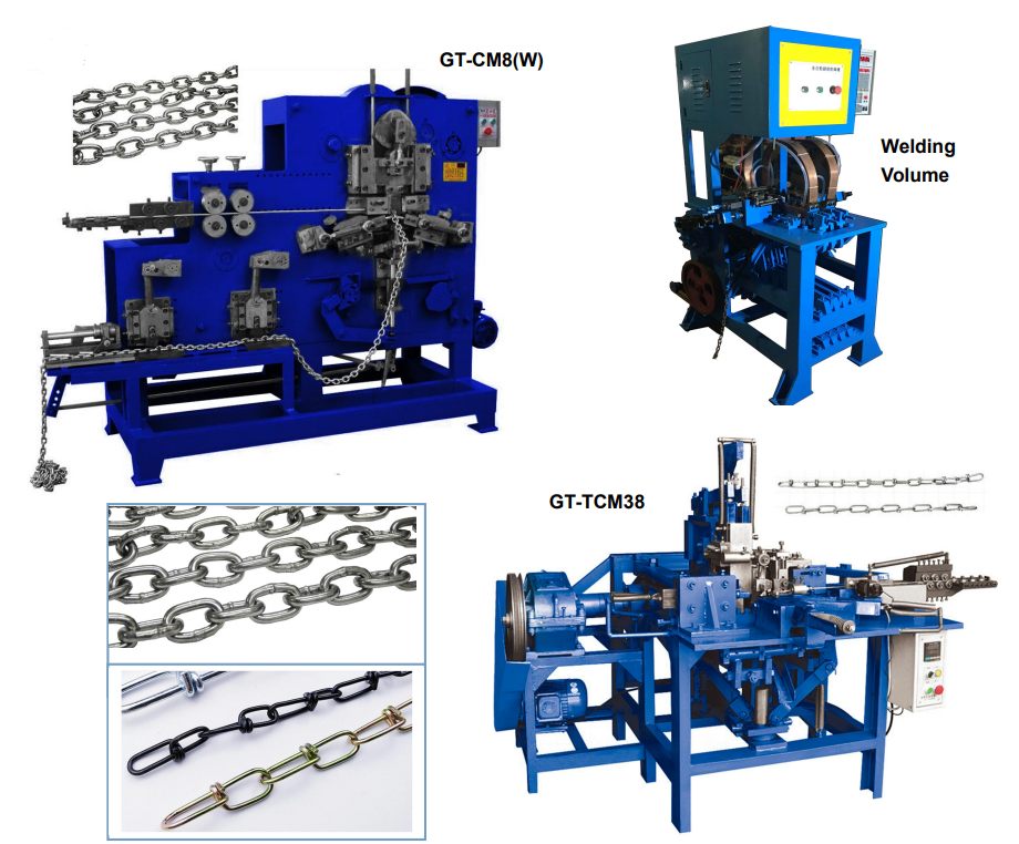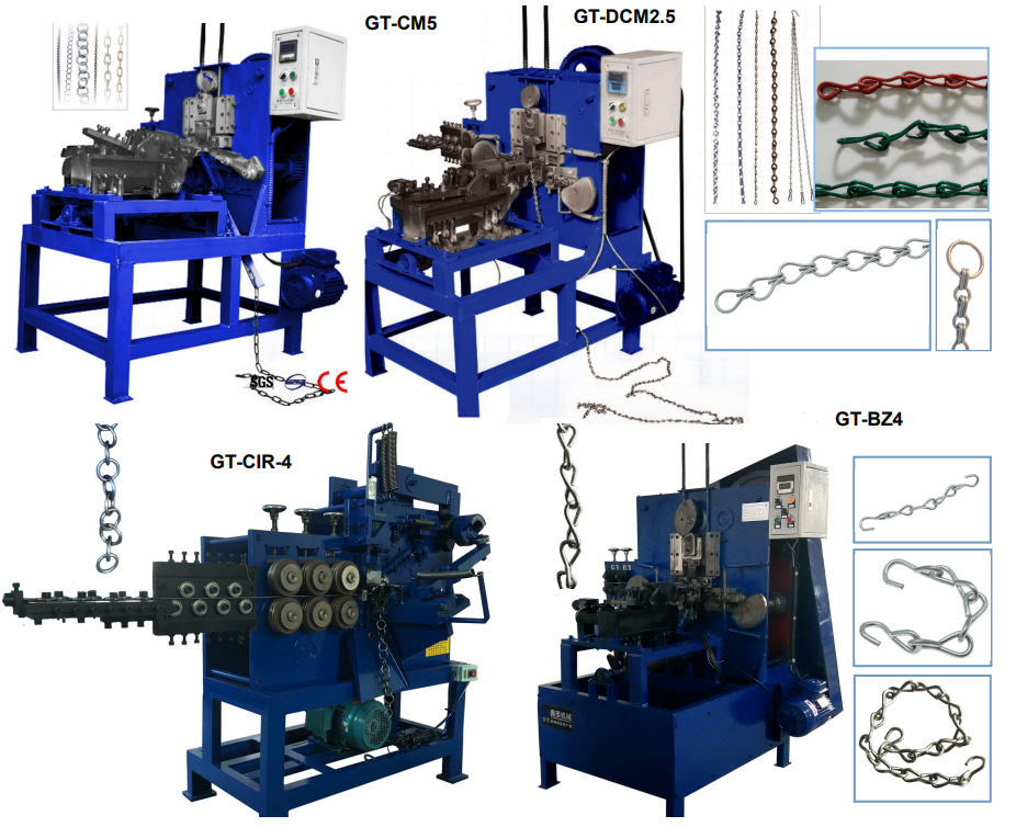 Машина для изготовления цепей предназначена для производства различных видов цепей, кольцевых цепей и цепей с двойным крюком.