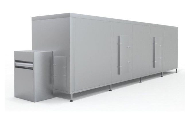 18. БЫСТРАЯ ЗАМОРОЗКА Принцип действия: Сильный ветер направляется снизу вверх от ленты, а лента с мощной вибрационной системой позволяет материалу перемещаться по сетчатой ленте. Это может обеспечить разделение замороженного материала во время динамической обработки. Мощность: 20 кВт Температура включения/выключения: +15/-18℃ Температура замораживания: -35℃ Время включения/выключения: 10-50 мин Трубопровод размораживания: ф42×5 Ширина ленты: 850 мм Размеры: 7500 * 3900 * 3100 мм Материал: SUS304 Охлаждение: R404A |