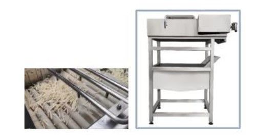 11. МАШИНА ДЛЯ ОБМАКИВАНИЯ Используется для сохранения хорошего цвета картофеля фри. Используйте декстрозу, это предотвратит появление серого оттенка. После бланширования продукт сливают в систему для обмакивания. В этой системе для обмакивания продукт может быть обработан SAPP и/или декстрозой. Для получения высококачественного картофеля фри требуется одинаковый цвет палочки. Функция SAPP заключается в предотвращении появления серого оттенка после замораживания. Благодаря декстрозе палочки окрашиваются в желто-коричневый цвет, например, для приготовления в микроволновке, в духовке и в свежем виде Мощность: 0,75 кВт Размеры: 3300*800*2080 мм Материал машины: SUS304 Материал сетчатого ремня: SUS304 Количество: 1 комплект | |