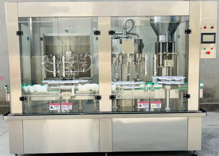 Комплексная машина для ополаскивания, розлива, наполнения азотом и укупорки — это полностью автоматизированный, многофункциональный агрегат, который объединяет в себе функции ополаскивания, розлива, наполнения азотом и укупорки пробкой.