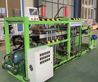 Полностью автоматическая машина для компрессионного формования, представляющая собой универсальную систему непрерывного формования и штамповки. Она объединяет в единую производственную линию следующие операции: подача материала, пластификация и нагрев, смыкание форм и формование, охлаждение и обрезка, гидравлическая пробивка отверстий и автоматическая резка.