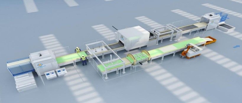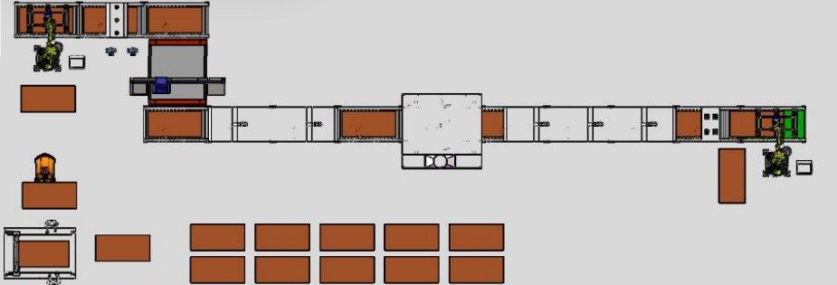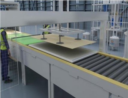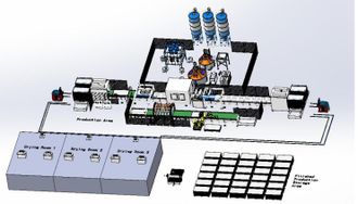 Автоматическая производственная линия включает в себя: Машину для разгрузки форм, Распылительную машину, Автоматический укладчик и отрезчик сетки, Машину для вдавливания сетки, Машину для укладки форм в стопки, Рольганговый конвейер и Напольный рельсовый конвейер. Все они управляются единым шкафом управления с межстанционной связью, что позволяет осуществлять полностью автоматическую работу с программируемой системой.