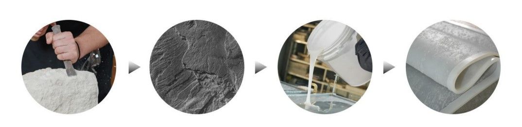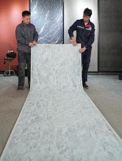 Гибкая черепица производится по передовой композитной технологии, главным образом путем соединения натуральной каменной крошки с полимерными материалами. С помощью множества процессов, таких как отверждение и резка, в конечном итоге формируется легкий, гнущийся и обладающий высокой атмосферостойкостью отделочный материал. Она широко используется для отделки внутренних и внешних стен, колонн и поверхностей сложной формы.
